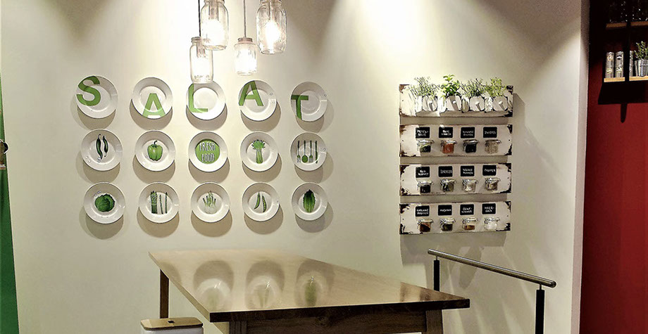 Aufsteller in Holz "EAT" und Regal-Dekoration